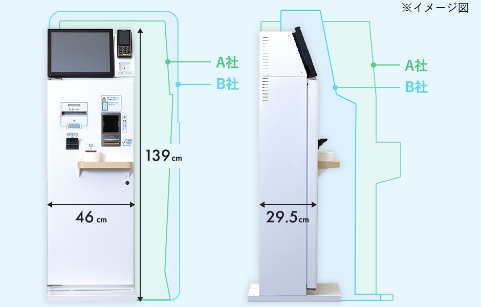 また、電源やネットワーク環境の整備も必要となるため、 設置前にはレイアウトの見直しや設備工事が必要になる場合もあります。 限られたスペースを有効に活用するためには、 コンパクトな機種の選定や配置計画が重要になります。