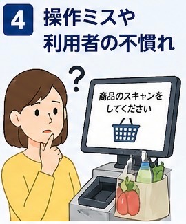 利用者が操作に迷うと、スキャン漏れや決済ミス、重量センサーエラーなどが発生しやすくなります。