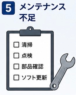 また、ソフトウェアの更新を行わない場合も、不具合やセキュリティリスクが生じる可能性があります。安定運用のためには、定期的な点検と保守契約の活用が有効です。