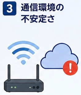 キャッシュレス決済やクラウドPOS連携を利用するセルフレジでは、通信環境の影響を受けやすくなります。Wi-Fiの電波が弱い、回線が混雑している、ルーターの不具合があると、決済処理やデータ送信が正常に行われずエラーが発生します。